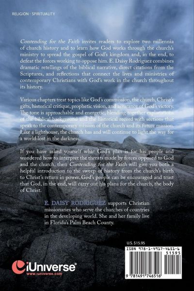 Contending for the Faith invites readers to explore two millennia of church history and to learn how God works through the church's ministry to spread the gospel of God's kingdom and, in the end, to defeat the forces working to oppose him. E. Daisy Rodriguez combines dramatic retellings of the biblical narrative, direct citations from the Scriptures, and reflections that connect the lives and ministries of contemporary Christians with God's work in the church throughout its history. Various chapters treat topics like God's commission, the church, Christ's gifts, historical critique, prophetic vision, and assurance of God's victory. The tone is approachable and energetic, blending together explanations of the biblical background and the historical record with sections that speak to the contemporary mission of the church and its future mission. Like a lighthouse, the church has and will continue to light the way for a world lost in the darkness. If you have asked yourself what God's plan is for his people and wondered how to interpret the threats made by forces opposed to God and the church, then Contending for the Faith will give you both a helpful introduction to the sweep of history from the church's birth to Christ's return in power. God's people can be encouraged and trust that God, in the end, will carry out his plans for the church, the body of Christ.