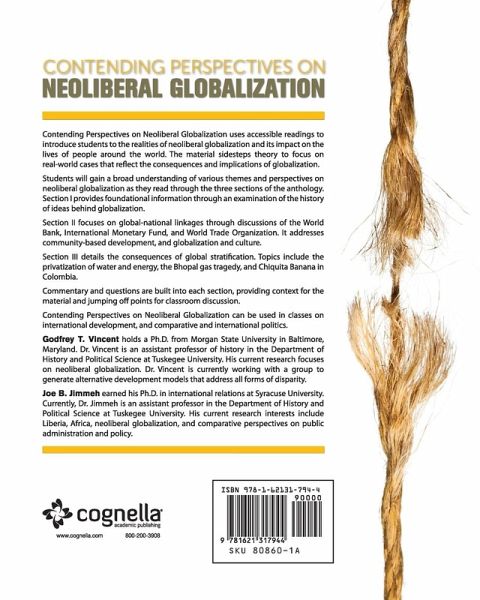 Contending Perspectives on Neoliberal Globalization uses accessible readings to introduce students to the realities of neoliberal globalization and its impact on the lives of people around the world. The material sidesteps theory to focus on real-world cases that reflect the consequences and implications of globalization. Students will gain a broad understanding of various themes and perspectives on neoliberal globalization as they read through the three sections of the anthology. Section I provides foundational information through an examination of the history of ideas behind globalization. Section II focuses on global-national linkages through discussions of the World Bank, International Monetary Fund, and World Trade Organization. It addresses community-based development, and globalization and culture. Section III details the consequences of global stratification. Topics include the privatization of water and energy, the Bhopal gas tragedy, and Chiquita Banana in Colombia. Commentary and questions are built into each section, providing context for the material and jumping off points for classroom discussion. Contending Perspectives on Neoliberal Globalization can be used in classes on international development, and comparative and international politics.