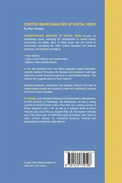 Systems developers, researchers and students working in the area of content-based analysis and retrieval of video and multimedia in general will find this book invaluable.