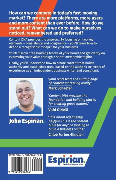 How can we compete in today's fast-moving market? There are more platforms, more users and more content than ever before. How do we stand out? What can we do to make ourselves noticed, remembered and preferred? Content DNA provides the answers. By focusing on two key elements - consistency and congruence - you'll learn how to define a recognizable "shape" for your business. You'll discover the building blocks of your brand and get clarity on expressing your value through a short, memorable tagline. Finally, you'll understand how to create content that builds authority and establishes trust, based on the author's 10+ years of experience as an independent business writer and consultant. "John represents the cutting edge of content marketing reality." - Mark Schaefer "Content DNA provides the foundation and building blocks for creating great content." - Vicki O'Neil "Talk about relentlessly helpful! This is the content bible for anyone looking to build a business online." - Chloë Forbes-Kindlen