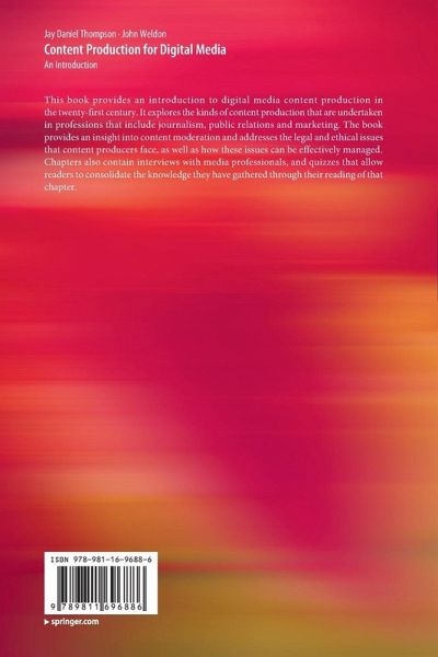 This book provides an introduction to digital media content production in the twenty-first century. It explores the kinds of content production that are undertaken in professions that include journalism, public relations and marketing. The book provides an insight into content moderation and addresses the legal and ethical issues that content producers face, as well as how these issues can be effectively managed. Chapters also contain interviews with media professionals, and quizzes that allow readers to consolidate the knowledge they have gathered through their reading of that chapter.