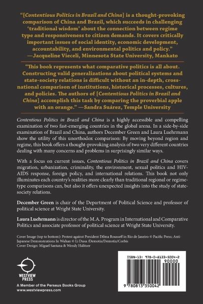 Contentious Politics in Brazil and China: Beyond Regime is a highly accessible and compelling examination of two fast-emerging countries in the global arena. It is not common to see Brazil and China examined side-by-side, but authors December Green and Laura Luehrmann show the utility of this unorthodox comparison: By moving beyond region and regime, this book offers a thought-provoking analysis of two very different countries dealing with many concerns and problems in surprisingly similar ways. With a focus on current issues, Contentious Politics in Brazil and China covers migration, urbanization, criminality, the environment, sexual politics and HIV-AIDS response, foreign policy, and international relations. This text not only illuminates each country's realities more clearly than traditional regional or regime-type comparisons can, but it offers unexpected insights into the study of state-society relations.