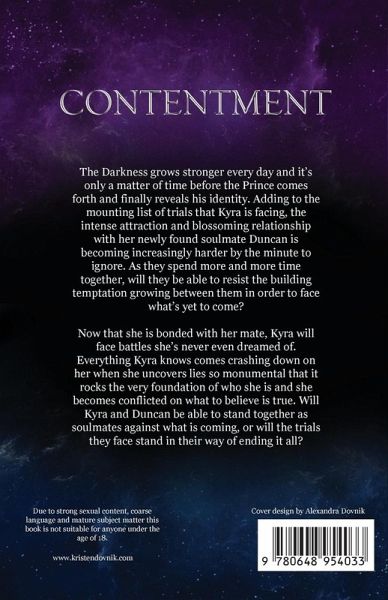 The Darkness grows stronger every day and it's only a matter of time before the Prince comes forth and finally reveals his identity. Adding to the mounting list of trials that Kyra is facing, the intense attraction and blossoming relationship with her newly found soulmate Duncan is becoming increasingly harder by the minute to ignore. As they spend more and more time together, will they be able to resist the building temptation growing between them in order to face what's yet to come?Now that she is bonded with her mate, Kyra will face battles she's never even dreamed of. Everything Kyra knows comes crashing down on her when she uncovers lies so monumental that it rocks the very foundation of who she is and she becomes conflicted on what to believe is true. Will Kyra and Duncan be able to stand together as soulmates against what is coming, or will the trials they face stand in their way of ending it all?