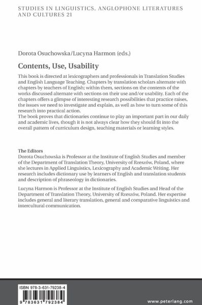 This book is directed at lexicographers and professionals in Translation Studies and English Language Teaching. Chapters by translation scholars alternate with chapters by teachers of English; within them, sections on the contents of the works discussed alternate with sections on their use and/or usability. Each of the chapters offers a glimpse of interesting research possibilities that practice raises, the issues we need to investigate and explain, as well as how to turn some of this research into practical action.