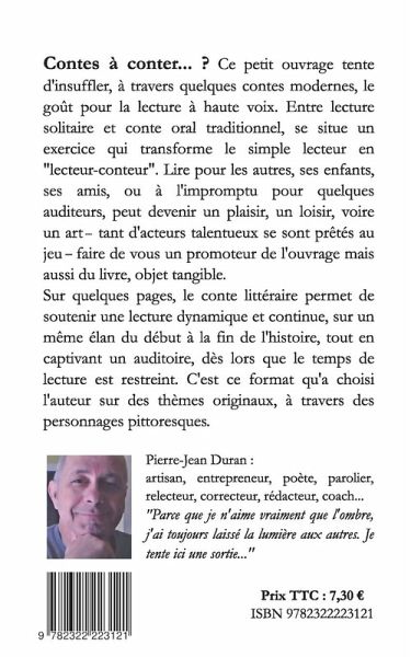 Ici les animaux ne parlent que dans les songes ou dans les transes, agissent pour faire entendre leur voix, dans un semblant de second rôle occupent le tout premier plan ; une créature mythologique est à peine esquissée, suggérée, c'est au lecteur de l'identifier ; une dame discrète dont on apprend si peu de choses devient une fée malgré elle, n'en adopte jamais ni la forme ni le comportement, et n'en a pas conscience elle-même ; un objet devient magique par le jeu de la foi qu'on lui porte ; les rituels agissent et soignent, portés par les croyances d'une communauté ; le loup et la nature, déifiés, réhabilitent le loup-garou -- et le loup -- diabolisé par l'homme...Ce petit ouvrage tente d'insuffler, à travers quelques contes modernes, le goût pour la lecture à haute voix. Entre lecture solitaire et conte oral traditionnel, se situe un exercice qui transforme le simple lecteur en "lecteur-conteur". Lire pour les autres, ses enfants, ses amis, ou a l'impromptu pour quelques auditeurs, peut devenir un plaisir, un loisir, voire un art -- tant d'acteurs talentueux se sont prêtés au jeu -- faire de vous un promoteur de l'ouvrage mais aussi du livre, objet tangible.Sur quelques pages, le conte littéraire permet de soutenir une lecture dynamique et continue, dès lors que le temps de lecture est restreint. C'est ce format qu'a choisi l'auteur sur des thèmes originaux, à travers des personnages pittoresques.