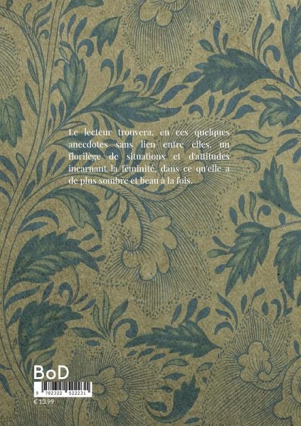 Le lecteur trouvera, en ces quelques anecdotes sans lien entre elles, un florilège de situations et d'attitudes incarnant la féminité, dans ce qu'elle a de plus sombre et beau à la fois.