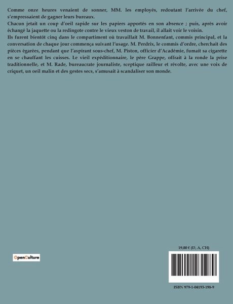 Un monde où les apparences règnent en maître, où les évolutions personnelles se heurtent aux conventions sociales, voilà le décor des ' Contes divers Tome 3 ' de Guy de Maupassant. Dans cette collection, l'auteur nous transporte à la fin du XIXe siècle, une époque marquée par des bouleversements sociaux et culturels. À travers une série de récits courts, Maupassant explore les complexités de l'âme humaine, révélant les failles et les contradictions de ses personnages. Chaque conte est une fenêtre ouverte sur les murs de la société bourgeoise, où l'hypocrisie et le désir de paraître sont omniprésents. Les thématiques abordées dans ces contes sont variées, allant de la critique sociale à l'analyse psychologique, en passant par des récits empreints de mystère et de suspense. Maupassant, avec son style incisif et sa plume acérée, dépeint des situations où les protagonistes sont souvent confrontés à des dilemmes moraux. Les récits, bien que fictifs, sont ancrés dans une réalité tangible, offrant une réflexion sur la condition humaine et les choix qui la façonnent. En lisant ces contes, le lecteur est invité à s'interroger sur les motivations changements des personnages, à découvrir les subtilités des relations humaines et à apprécier la finesse avec laquelle Maupassant décrit les travers de son époque. Par son écriture, l'auteur nous offre une perspective sur les enjeux sociaux de son temps, tout en nous permettant de mieux comprendre les transformations qui animent les interactions humaines. Ce livre est une invitation à un voyage littéraire où chaque page révèle un nouvel aspect de la nature humaine.