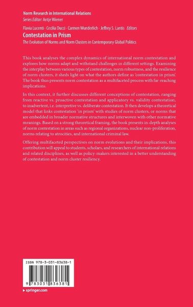 In this context, it further discusses different conceptions of contestation, ranging from reactive vs. proactive contestation and applicatory vs. validity contestation, to inadvertent, i.e. interpretive vs. deliberate contestation. It then develops a theoretical model that links contestation 'in prism' with studies of norm clusters, or norms that are embedded in broader normative structures and interwoven with other normative meanings. Based on a strong theoretical framing, the book presents in-depth analyses of norm contestation in areassuch as regional organizations, nuclear non-proliferation, norms relating to atrocities, and international criminal law.