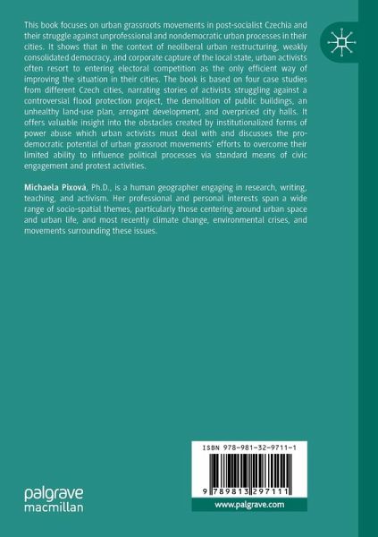 This book focuses on urban grassroots movements in post-socialist Czechia and their struggle against unprofessional and nondemocratic urban processes in their cities. It shows that in the context of neoliberal urban restructuring, weakly consolidated democracy, and corporate capture of the local state, urban activists often resort to entering electoral competition as the only efficient way of improving the situation in their cities. The book is based on four case studies from different Czech cities, narrating stories of activists struggling against a controversial flood protection project, the demolition of public buildings,an unhealthy land-use plan, arrogant development, and overpriced city halls. It offers valuable insight into the obstacles created by institutionalized forms of power abuse which urban activists must deal with and discusses the pro-democratic potential of urban grassroot movements' efforts to overcome their limited ability to influence political processes via standard means of civic engagement and protest activities.