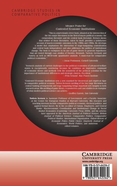 This book helps explain one of the most intriguing and politically salient puzzles in comparative political economy: why some countries have much higher unemployment rates than others. Contrary to new classical economics the focus is on explaining distribution and equilibrium unemployment, and contrary to neo-corporatist theory the role of monetary policy and rational expectation is integral to the analysis. The book makes two central arguments. The first is that monetary policies affect equilibrium employment whenever wages are set above the firm level. The second argument focuses on the distributive effects of different institutions, and models institutional design as a strategic game between partisan governments and cross-class alliances of unions and employers.