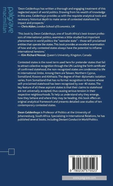 'Deon Geldenhuys has written a thorough and engaging treatment of this neglected aspect of world politics. Drawing from his wealth of knowledge in this area, Geldenhuys provides us with the requisite analytical tools and necessary historical depth to make sense of contested statehood, its impact and prospects.' - Chris Alden, London School of Economics, UK