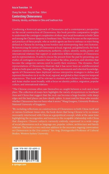 "By including reflections on constructions of Chineseness in both China itself and in various Southeast Asian sites, the book shows that being Chinese is by no means necessarily intertwined with China as a geopolitical concept, while at the same time highlighting the incongruities and tensions in the escapable relationship with China that diasporic Chinese subjects variously embody, expressed in a wide range of social phenomena such as language use, popular culture, architecture and family relations. The book is a very welcome addition to the necessary ongoing conversation on Chineseness in the 21st century." Ien Ang, Distinguished Professor of Cultural Studies, Western Sydney University.