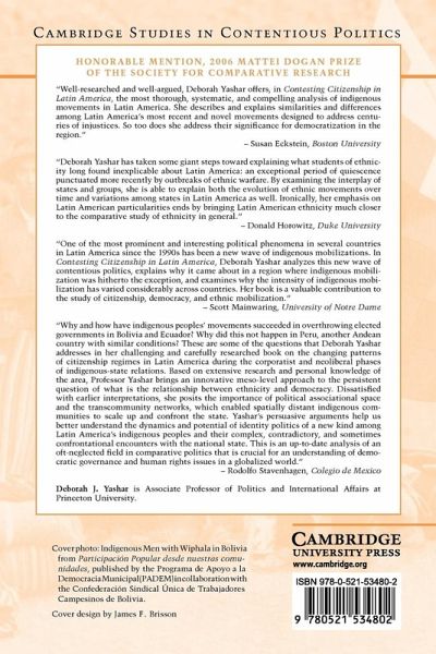 Indigenous people in Latin America have mobilized in unprecedented ways - demanding recognition, equal protection, and subnational autonomy. These are remarkable developments in a region where ethnic cleavages were once universally described as weak. Recently, however, indigenous activists and elected officials have increasingly shaped national political deliberations. Deborah Yashar explains the contemporary and uneven emergence of Latin American indigenous movements - addressing both why indigenous identities have become politically salient in the contemporary period and why they have translated into significant political organizations in some places and not others. She argues that ethnic politics can best be explained through a comparative historical approach that analyzes three factors: changing citizenship regimes, social networks, and political associational space. Her argument provides insight into the fragility and unevenness of Latin America's third wave democracies and has broader implications for the ways in which we theorize the relationship between citizenship, states, identity, and social action.