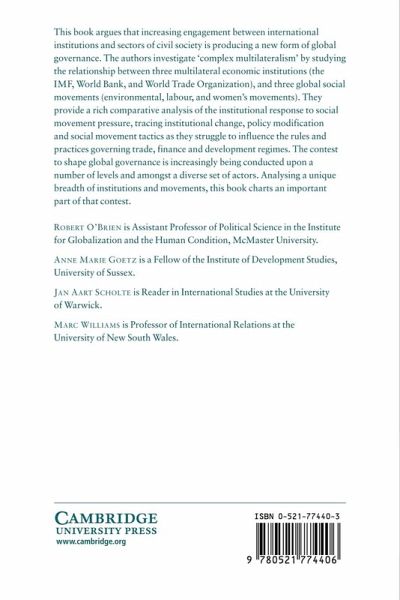 Preface List of abbreviations 1. Contesting global governance: multilateralism and global social movements 2. The World Bank and women's movements 3. The World Trade Organisation and labour 4. The World Bank, the World Trade Organisation and the environmental social movement 5. The International Monetary Fund and social movements 6. Complex multilateralism: MEIs and GSMs References Index.