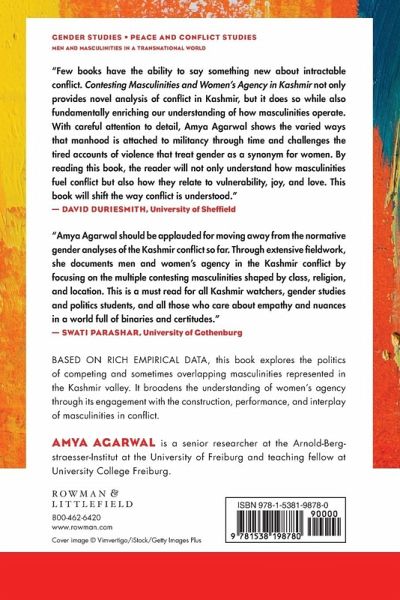 What is the significance of gender and masculinities in understanding conflict? Through an ethnographic study conducted between 2013 and 2016, this book explores the politics of competing and sometimes overlapping masculinities represented by the state armed forces and the non-state actors in the Kashmir valley. In addition, the book broadens the understanding of women’s agency through its engagement with the construction, performance, and interplay of masculinities in the conflict. Combining existing elements of both feminist research and critical scholarship on men and masculinities, the book highlights the significance of foregrounding the interplay of men’s identities in conflicts to understand agency in a meaningful way. Through the focus on the simultaneous play of multiple masculinities, the book also questions the oversimplified and monolithic usage of masculinity being associated only with violence in conflicts. The empirical data in the book includes interviews and narratives of multiple stakeholders belonging to diverse vantage points in the Kashmir conflict. Some of these include activists, widows, wives of the disappeared, ex-militants, surrendered militants, participants of the stone-pelting movement, mothers of sons killed in the conflict, women representatives of the village Halqa Panchayats, and army personnel. The book also draws from alternative material in the form of graffiti, folk songs, poetry on graves, and slogans. Through anecdotal reminiscence, the author reflects on the challenges of field research in Kashmir that served as an opportunity for self-contemplation.