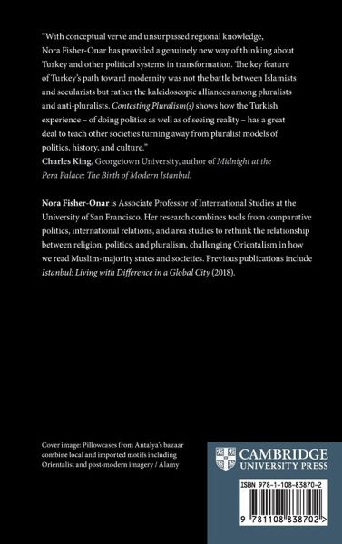 Contesting Pluralism(s) challenges a widespread tendency to limit studies of Turkish - and Muslim - politics to 'Islamist vs. secularist' or 'Islam vs. democracy' debates. Instead, Nora Fisher-Onar's innovative argument centers on coalitions for and against pluralism. Retelling Turkey's story from the late Ottoman Empire to the present as a tale of pluralizing vs. anti-pluralist coalitions, this book offers an alternative explanation for major outcomes from elections and coup d'etats to revolutions. Here, cross-camp alliances pit those who are willing to coexist with 'Other(s)' against those who champion a unitary, national project in which everyone speaks, believes, looks, and loves as they do. Drawing on a rich array of primary and secondary data, Fisher-Onar introduces an analytical framework for capturing causal complexity in political contestation. This study rejects Orientalist exceptionalism, rereading the relationship between political religion, pluralism, and populism via a framework that travels across and beyond the Muslim-majority world.