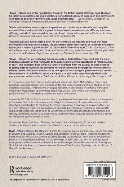 In the decade since Kevin Hylton's seminal book 'Race' and Sport: Critical Race Theory was published, racialised issues have remained at the forefront of sport and leisure studies. In this important new book, Hylton draws on original research in contemporary contexts, from sport coaching to cyberspace, to show once again that Critical Race Theory is an insightful and productive tool for interrogating problematic social phenomena. Inspired by W.E.B. Du Bois' statement that "the problem of the twentieth century is the problem of the colour line", this book sheds a critical light on the way sport perpetuates racism, while identifying opportunities to challenge its insidious presence. Exploring and explaining the ways in which notions of 'race' are expressed and contested at individual, institutional and societal levels, it addresses key topics such as whiteness, diversity, colourblindness, unconscious bias, identity, leadership, humour and discourse to investigate how language can be used as a device for resistance against racism in sport. Contesting 'Race' and Sport: Shaming the Colour Line is vital reading for all sport studies students, academics and those with an interest in race, ethnicity and society.