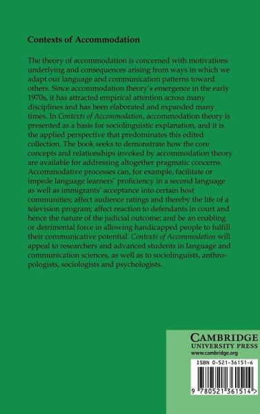 The theory of accommodation is concerned with motivations underlying and consequences arising from ways in which we adapt our language and communication patterns toward others. Since accommodation theory's emergence in the early l970s, it has attracted empirical attention across many disciplines and has been elaborated and expanded many times. In Contexts of Accommodation, accommodation theory is presented as a basis for sociolinguistic explanation, and it is the applied perspective that predominates this edited collection. The book seeks to demonstrate how the core concepts and relationships invoked by accommodation theory are available for addressing altogether pragmatic concerns. Accommodative processes can, for example, facilitate or impede language learners' proficiency in a second language as well as immigrants' acceptance into certain host communities; affect audience ratings and thereby the life of a television program; affect reaction to defendants in court and hence the nature of the judicial outcome; and be an enabling or detrimental force in allowing handicapped people to fulfil their communicative potential. Contexts of Accommodation will appeal to researchers and advanced students in language and communication sciences, as well as to sociolinguists, anthropologists, sociologists and psychologists.