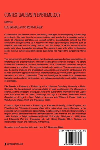 This comprehensive anthology collects twenty original essays and critical commentaries on different aspects of contextualism, written by leading philosophers on the topic. The editors' introduction sketches the historical development of the contextualist movement and provides a survey and analysis of its arguments and major positions. The papers explore, inter alia, the central problems and prospects of semantic (or conversational) contextualism and its main alternative approaches such as inferential (or issue) contextualism, epistemic contextualism, and virtue contextualism. They also investigate the connections between contextualism and epistemic particularism, and between contextualism and stability accounts of knowledge.