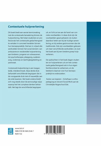 Dit boek biedt een eerste kennismaking met de contextuele benadering binnen de hulpverlening. Het helpt studenten en professionals het contextuele gedachtengoed te vertalen in concreet handelen binnen hun beroepspraktijk. Dat kan in vrijwel alle werkvelden binnen het social domein: van ambulante en residentiële hulpverlening aan kinderen, jongeren en volwassenen, tot psychotherapie, pleegzorg, ouderenzorg, onderwijs en leerlingbegeleiding en pastoraat. Contextuele hulpverlening is een toegankelijk, inleidend boek. Deze derde druk behandelt verschillende begrippen die in de voorgaande druk niet of nauwelijks aan de orde kwamen. Het boek onderscheidt zich nog steeds door de eenvoudige wijze waarop het het complexe denken behandelt. Het legt de verschillende begrippen uit, en licht ze toe aan de hand van concrete voorbeelden. In deze druk zijn de voorbeelden geactualiseerd. Ze sluiten daardoor beter aan bij de huidige samenleving, en bij andere gezinsvormen dan de traditionele. Ook zijn voorbeelden gekozen uit meer verschillende werkvelden. Zo sluit het boek aan bij een bredere groep hulpverleners. De opdrachten in het boek dagen studenten en hulpverleners uit om het contextuele gedachtengoed ook in hun eigen familiecontext te verkennen, en de betekenis daarvan voor hun beroepspraktijk te onderzoeken. Karlan van Ieperen - Schelhaas is orthopedagoog en docent Social Work aan de Christelijke Hogeschool Ede.