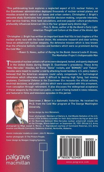Thousands of nuclear antiaircraft arms were designed, tested and deployed in the United States during Dwight D. Eisenhower's presidency. These Army "Nike-Hercules" missiles, Air Force "Genie" rockets, and "BOMARC" and "Falcon" missiles were meant to counter a raid by attacking Soviet bombers. U.S. policy makers believed that the American weapons could safely compensate for technological limitations which otherwise made it difficult to destroy high flying, fast moving airplanes. Continental Defense in the Eisenhower Era traces this armament from conception through deployment. Bright recounts official actions, doctrinal decisions, and public policies. It also discusses the widespread acceptance of these weapons by the American public, a result of being touted in news releases, featured in films and television episodes, and disseminated throughout society as a whole.