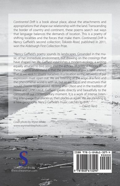 Continental Drift is a book about place, about the attachments and appropriations that shape our relationship with the land. Transcending the border of country and continent, these poems search out ways that language balances the demands of location. This is a poetry of shifting localities and the forces that make them. Continental Drift is Nancy Gaffield's second collection. Tokaido Road, published in 2011, won the Aldeburgh First Collection Prize. ¿"Nancy Gaffield's poetry sounds its landscapes. Grounded in the music of her immediate environment, but drawing on the crossings that have shaped her life, Gaffield establishes a modern ecology, a writing equally attuned to bird song and the echoes of political history. What these poems understand is that the parameters of place have altered, that as we seek to situate ourselves in a location so the networks of our expression must open out. We are listening at the edge of a field and the phenomenal world is with us, but so are forces and structures that would choose to go unsaid. Writing after Olson and in the tradition of Howe and LANGUAGE, Gaffield speaks directly and beautifully to the contours of our contemporary moment. It is a work of intense listening, a language that places us, then places us again. We are standing in a new geography. Nancy Gaffield's music catches its drift." -David Herd