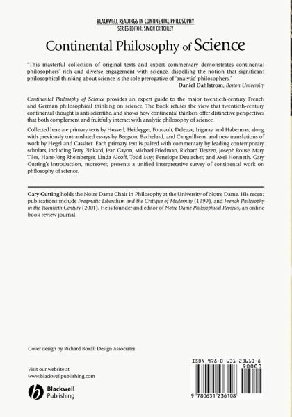 "Continental philosophers in Britain and the United Stateshave for the most part ignored the enormous contribution ofcontinental philosophy to the philosophy of science, just asphilosophers of science in Britain and the United States have done.Gary Gutting has long been a leading exponent of the importance ofthis contribution and his superb collection, with its many newtranslations, should go a long way toward turning the tide."Robert Bernasconi, University of Memphis