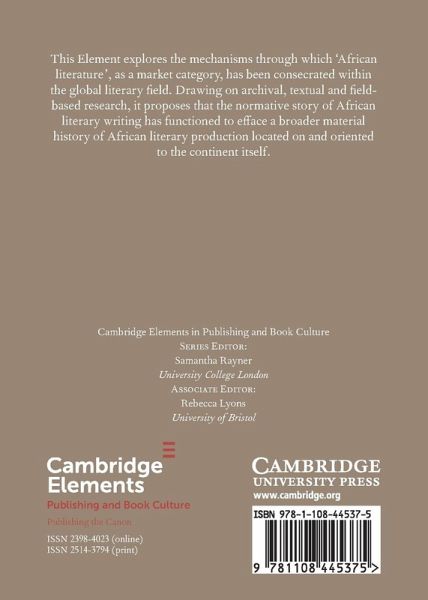Drawing on original archival and field research, this Element offers an original and incisive account of the making of African literature.