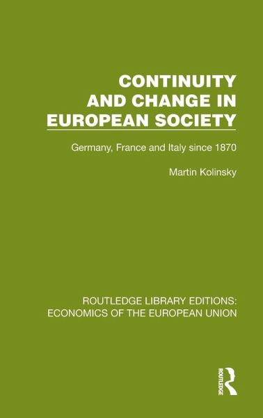 Continuity and Change in European Society (1974) surveys the political and social development of France, Germany and Italy against the background of a wider Europe, showing the complex relationship between political change and social continuity. It deals with the impact of industrialisation on the political structures of each country, showing their particular problems as well as demonstrating the common European trends. Fascism and Nazism are examined in detail, looking at common features and the wider sociological trends. Lastly, the book examines post-1945 Europe and the formation of the European Community. Social and political change in each country is separately charted and the continuing pattern of European social relations is examined.