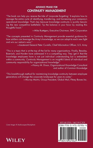 This pressing question is insightfully answered in this landmark book. Operational knowledge has never been more critical to organizational success. Knowledge loss from downsizing, imminent baby-boomer retirements, and high job turnover have created a knowledge continuity crisis that poses an unprecedented threat to organizational productivity and profits. Based on extensive research, Continuity Management solves this crucial problem of knowledge loss for managers at any organizational level by describing an effective strategy for preserving knowledge continuity between employee generations. Revolutionary in its effect, but evolutionary in its practice, continuity management is fueling a new knowledge revolution. This book is about that revolution-and how to lead it.