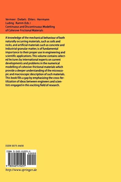 A knowledge of the mechanical behaviour of both naturally occurring materials, such as soils and rocks, and artificial materials such as concrete and industrial granular matter, is of fundamental importance to their proper use in engineering and scientific applications. This volume contains selected lectures by international experts on current developments and problems in the numerical modelling of cohesive-frictional materials which provide a deeper understanding of the microscopic and macroscopic description of such materials. This book fills a gap by emphasizing the cross-fertilization of ideas between engineers and scientists engaged in this exciting field of research.