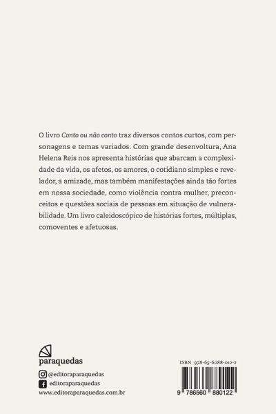 O livro Conto ou não conto traz diversos contos curtos, com personagens e temas variados. Com grande desenvoltura, Ana Helena Reis nos apresenta histó