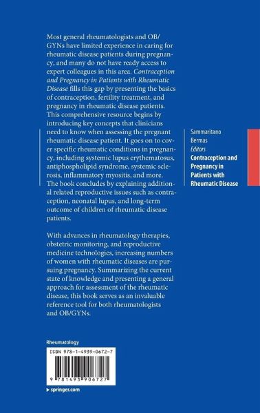 Rheumatic (or systemic autoimmune) diseases disproportionately affect young women: the female-to-male ratio for patients with systemic lupus erythematosus during the reproductive years is approximately 9:1. In the mid- to late-twentieth century, women with rheumatic disease diagnoses were often advised to avoid pregnancy due to fear of disease exacerbation and adverse outcome. In more recent years, many women with rheumatic disease have deferred childbearing until a later age due to active disease or unsafe therapies. However, with advances in rheumatology therapies, obstetric monitoring, and reproductive medicine technologies, increasing numbers of women with rheumatic diseases are pursuing pregnancy. As a result, obstetricians and rheumatologists need to be aware of the current state of knowledge and the recommendations for management of pregnancy in these patients. Contraception and Pregnancy in Patients with Rheumatic Disease explains the basics of contraception, fertility treatment, and pregnancy in rheumatic disease patients and serves as a guide and reference tool for both rheumatologists and OB/GYNs. Most general rheumatologists and OB/GYNs have limited experience in caring for rheumatic disease patients during pregnancy, and many do not have ready access to expert colleagues in this area. This book summarizes the current state of knowledge and presents a general approach for assessment of the rheumatic disease patient considering pregnancy, hormonal contraception or infertility treatment.