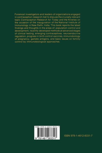 The twentieth century will close with 5 billion people added to the current global population. Between 1980 and the year 2000, the total world population will increase from 4 billion 10 a liUle over 6 billion. There will be half as many morc people on earth during these 20 years than the number accumulated since the origin of man to 1980. Overpopulation is particularly acute in economically developing countries, where contraception has become a social necessity. Comraceplion Researcll for Today and Ihe Nineties carries the proceedings of an international symposium convened in New Delhi in October, 1986, to review the status of current research in contraception. Major organizations supporting basic and applied research in contraception-The Population Council, World Health Organization (WHO), The Rockefeller Foundation, United States Agency for International Development (USAID), International Development Research Center of Canada (IDRC), National Institutes of Health (NIH), and theIndian Council of Medical Research (ICMR)- were represented by the heads of divi sions who projected respective programs and strategies. Principal scientists responsible for many of the new leads participated.