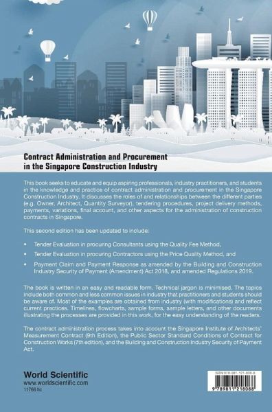 This book seeks to educate and equip aspiring professionals, industry practitioners, and students in the knowledge and practice of contract administration and procurement in the Singapore Construction Industry. It discusses the roles of and relationships between the different parties (e.g. Owner, Architect, Quantity Surveyor), tendering procedures, project delivery methods, payments, variations, final account, and other aspects for the administration of construction contracts in Singapore. This second edition has been updated to include: Tender Evaluation in procuring Consultants using the Quality Fee Method, Tender Evaluation in procuring Contractors using the Price Quality Method, and Payment Claim and Payment Response as amended by the Building and Construction Industry Security of Payment (Amendment) Act 2018, and amended Regulations 2019. The book is written in an easy and readable form. Technical jargon is minimised. The topics include both common and less common issues in industry that practitioners and students should be aware. Most of the examples are obtained from industry (with modifications) and reflect current practices. Timelines, flowcharts, sample forms, sample letters, and other documents illustrating the processes are provided in this work, for the easy understanding of the readers. The contract administration process takes into account the Singapore Institute of Architects' Measurement Contract (9th Edition), the Public Sector Standard Conditions of Contract for Construction Works (7th edition), and also the Building and Construction Industry Security of Payment Act.