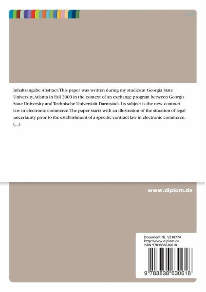 This paper was written during my studies at Georgia State University, Atlanta in Fall 2000 in the context of an exchange program between Georgia State University and Technische Universität Darmstadt. Its subject is the new contract law in electronic commerce.