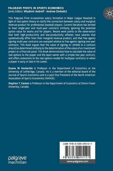 This Palgrave Pivot re-examines salary formation in Major League Baseball in light of real option theory to clarify the connection between salary and marginal revenue product for professional baseball players. Current literature has tended to treat single-year and multi-year contracts similarly, ignoring the potential option value for teams and for players. Recent work points to the observation that both high-productivity and low-productivity athletes have salaries that systematically differ from their marginal revenue product, and that free agents signing multi-year contracts are overpaid relative to free agents signing one-year contracts. This book argues that the value of signing an athlete to a contract should be determined similarly to the determination of the value of an investment project or a financial asset. This book demonstrates how to calculate the value of real options to the player and the team owner with a simple two-year contract, and offers extensions to the realoptions model for multiyear contracts or when a player is early or late in his career.