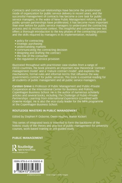 Insightful and comprehensive and covering new subjects like globalization and IT, this text, international in its approach, provides a thorough introduction to the key phases of the contracting process and the skills required by managers in its implementation. These include: policy for contracting strategic purchasing understanding markets communicating the contracting decision designing and drafting the contract the role of the consumer the regulation of service provision Illustrated throughout with practitioner case-studies from a range of OECD countries, this book presents an important new theoretical 'contract management model' and a 'mature contract model', and explores the mechanisms, formal rules and informal norms that influence the way governments contract for public services. This book is essential reading for all students of public management and all public service managers.