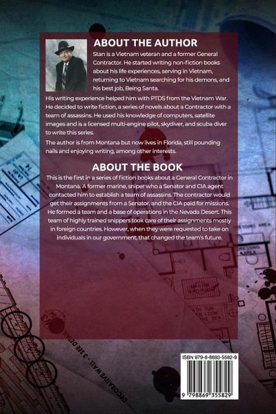 This is the first in a series of fiction books about a General Contractor in Montana. A former marine, sniper who a Senator and CIA agent contacted him to establish a team of assassins. The contractor would get their assignments from a Senator, and the CIA paid for missions. He formed a team and a base of operations in the Nevada Desert. This team of highly trained snipers took care of their assignments mostly in foreign countries. However, when they were requested to take on individuals in our government, that changed the team's future.