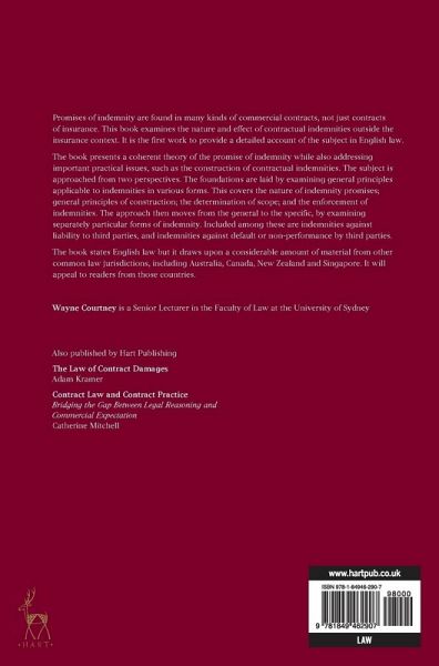 Promises of indemnity are found in many kinds of commercial contracts, not just contracts of insurance. This book examines the nature and effect of contractual indemnities outside the insurance context. It is the first work to provide a detailed account of the subject in English law. The book presents a coherent theory of the promise of indemnity while also addressing important practical issues, such as the construction of contractual indemnities. The subject is approached from two perspectives. The foundations are laid by examining general principles applicable to indemnities in various forms. This covers the nature of indemnity promises; general principles of construction; the determination of scope; and the enforcement of indemnities. The approach then moves from the general to the specific, by examining separately particular forms of indemnity. Included among these are indemnities against liability to third parties, and indemnities against default or non-performance by third parties. The book states English law but it draws upon a considerable amount of material from other common law jurisdictions, including Australia, Canada, New Zealand and Singapore. It will appeal to readers from those countries.