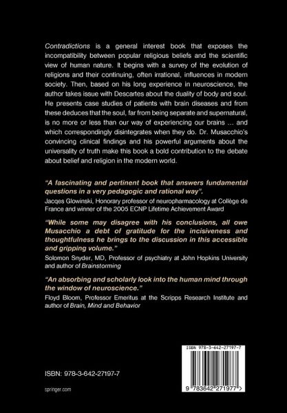 "Contradictions" is a general interest book that exposes the incompatibility between popular religious beliefs and the scientific view of human nature. It begins with a survey of the evolution of religions and their continuing, often irrational, influences in modern society. Then, based on his long experience in neuroscience, the author takes issue with Decartes about the duality of body and soul. He presents case studies of patients with brain diseases and from these deduces that the soul, far from being separate and supernatural, is no more or less than our way of experiencing our brains ... and which correspondingly disintegrates when they do. Convincing clinical findings and powerful arguments about the universality of truth make this book a bold contribution to the debate about belief and religion in the modern world.