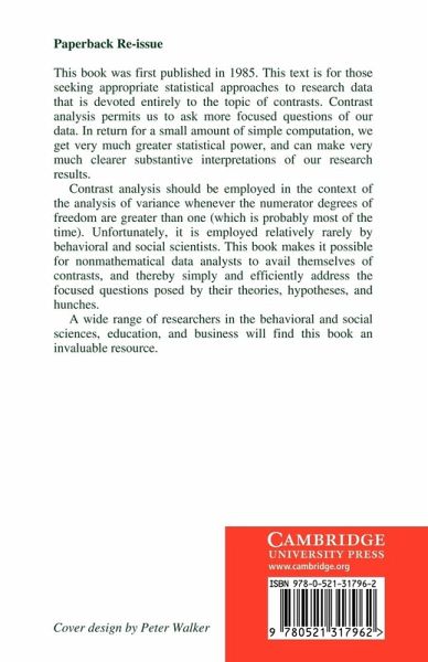 This book, first published in 1985, is for those seeking appropriate statistical approaches to research data that is devoted entirely to the topic of contrasts. Contrast analysis permits us to ask more focused questions of our data. In return for a small amount of simple computation, we get greater statistical power, and can make clearer substantive interpretations of the research results. Contrast analysis should be employed in the context of the analysis of variance whenever the numerator degrees of freedom are greater than one (which is probably most of the time). Unfortunately, it is employed relatively rarely by behavioural and social scientists. This book makes it possible for non-mathematical data analysts to avail themselves of contrasts, and thereby simply and efficiently to address the focused questions posed by their theories, hypotheses, and hunches. A wide range of researchers in the behavioural and social sciences, education and business will find this book an invaluable resource.