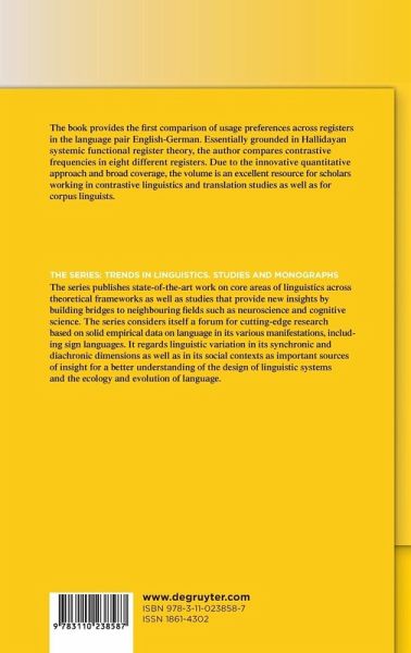 The book provides the first comparison of usage preferences across registers in the language pair English-German. Due to the innovative quantitative approach and broad coverage, the volume is an excellent resource for scholars working in contrastive linguistics and translation studies as well as for corpus linguists.