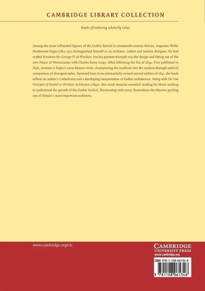 Augustus Welby Northmore Pugin (1812-52), architect, author and interior designer, was among the most important figures in Britain's nineteenth-century Gothic Revival. First published in 1836, Contrasts is his most famous work, and this revised second edition of 1841 champions medieval architecture by satirically comparing it with 'debased' Regency equivalents.