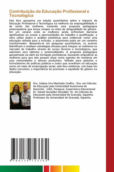 Este livro apresenta um estudo quantitativo sobre o impacto da Educação Profissional e Tecnológica na melhoria da empregabilidade e da renda das mulheres, trazendo uma proposta pedagógica emancipatória que busca romper os ciclos de desigualdade de gênero. Em um cenário onde as mulheres ainda enfrentam barreiras significativas no acesso a oportunidades de trabalho e qualificação, a obra utiliza dados e análises estatísticas para evidenciar como uma educação voltada para a inclusão, a autonomia pode ser um caminho transformador. Baseando-se em pesquisas quantitativas, os autores identificam e analisam estratégias eficazes para integrar as mulheres no mercado de trabalho através de cursos técnicos e tecnológicos, que valorizam seus talentos e potencialidades. A proposta pedagógica apresentada vai além da formação profissional, buscando empoderar as mulheres para que elas possam atuar como agentes de mudança em suas comunidades e setores produtivos. Voltado para gestores e formuladores de políticas públicas e todos que acreditam na educação como um meio de emancipação social, este livro evidencia, com base em dados concretos, a importância de promover a equidade de gênero na educação.