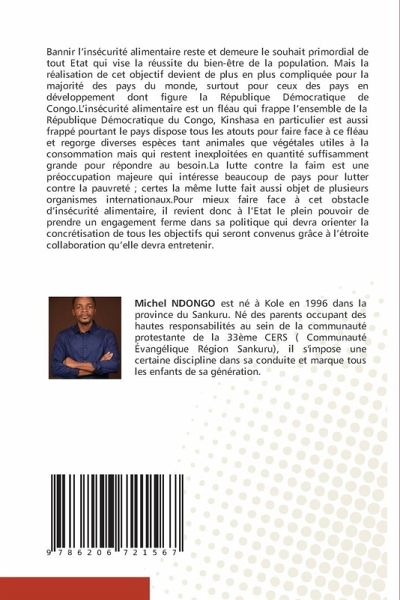 Bannir l'insécurité alimentaire reste et demeure le souhait primordial de tout Etat qui vise la réussite du bien-être de la population. Mais la réalisation de cet objectif devient de plus en plus compliquée pour la majorité des pays du monde, surtout pour ceux des pays en développement dont figure la République Démocratique de Congo.L'insécurité alimentaire est un fléau qui frappe l'ensemble de la République Démocratique du Congo, Kinshasa en particulier est aussi frappé pourtant le pays dispose tous les atouts pour faire face à ce fléau et regorge diverses espèces tant animales que végétales utiles à la consommation mais qui restent inexploitées en quantité suffisamment grande pour répondre au besoin.La lutte contre la faim est une préoccupation majeure qui intéresse beaucoup de pays pour lutter contre la pauvreté ; certes la même lutte fait aussi objet de plusieurs organismes internationaux.Pour mieux faire face à cet obstacle d'insécurité alimentaire, il revient donc à l'Etat le plein pouvoir de prendre un engagement ferme dans sa politique qui devra orienter la concrétisation de tous les objectifs qui seront convenus grâce à l'étroite collaboration qu'elle devra entretenir.