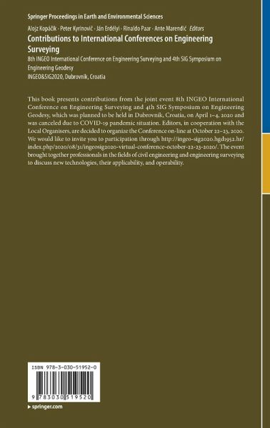 This book presents contributions from the joint event 8th INGEO International Conference on Engineering Surveying and 4th SIG Symposium on Engineering Geodesy, which was planned to be held in Dubrovnik, Croatia, on April 1-4, 2020 and was canceled due to COVID-19 pandemic situation. Editors, in cooperation with the Local Organisers, are decided to organize the Conference on-line at October 22-23, 2020. We would like to invite you to participation through http://ingeo-sig2020.hgd1952.hr/index.php/2020/08/31/ingeosig2020-virtual-conference-october-22-23-2020/. The event brought together professionals in the fields of civil engineering and engineering surveying to discuss new technologies, their applicability, and operability.