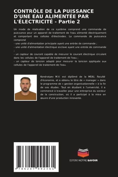 Un mode de réalisation de ce système comprend une commande de puissance pour un appareil de traitement de l'eau alimenté électriquement et comportant des cellules d'électrodes. La commande de puissance comprend- une unité d'alimentation principale ayant une entrée de commande ;- une unité d'alimentation électrique esclave ayant une entrée de commande ;- un capteur de courant capable de mesurer le courant électrique circulant dans les cellules de l'appareil de traitement de l'eau ;- un capteur de tension adapté pour mesurer la tension appliquée aux cellules de l'appareil de traitement de l'eau.