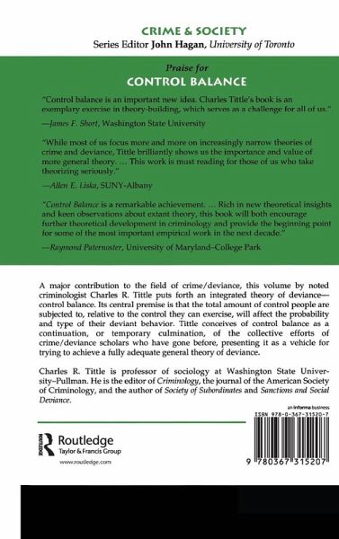 This book puts forth an integrated theory of deviance?control balance. It critically reviews other general theories such as anomie, Marxian conflict, social control, differential association/social learning, labelling, and routine activities.