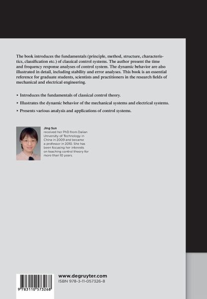 The book introduces the fundamentals (principle, structure, characteristics, classification etc.) of control systems. The dynamic behavior are also illustrated in detail. The authors also present the time/ frequency/stability/error response analyses of control system. This book is an essential reference for graduate students, scientists and practitioner in the research fields of mechanical and electrical engineering.